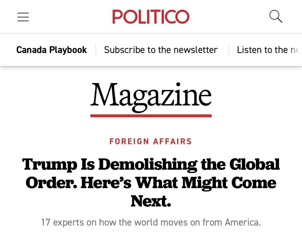 Περισσότερα“Trump Is Demolishing the Global Order. Here’s What Might Come Next. 17 experts on how the world moves on from America.”