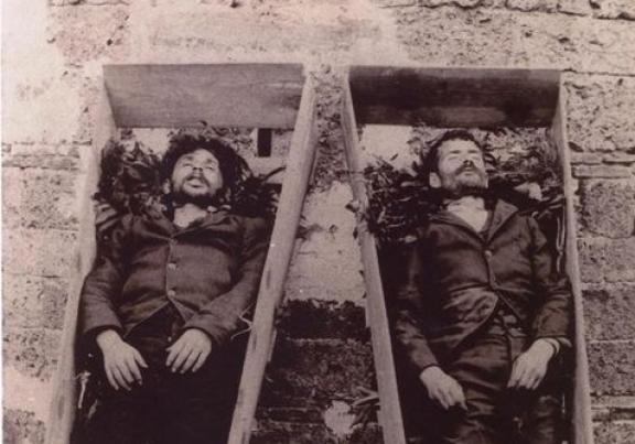 However, they fell victim to betrayal. The Bulgarian komitadji Josef Kasaptche, infamous for his cruelty, received the two men under false assurances of safety, disarmed them, and paraded them in humiliation through pro-Bulgarian (Exarchist) villages, provoking fear and disgust among the population. The public disgrace aimed to demoralize local Greeks and depict the Macedonian fighters as defeated invaders.