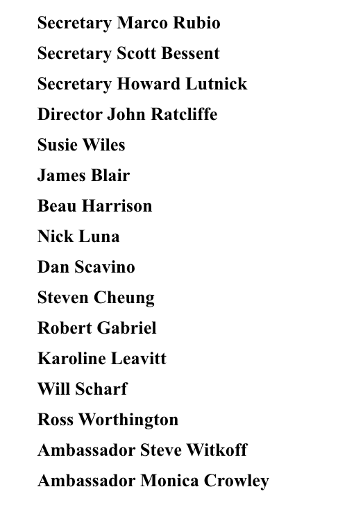 The US delegation traveling with POTUS to Anchorage today for the Trump-Putin Summit, per the White House pool