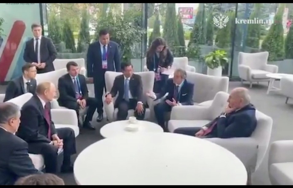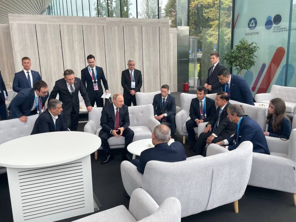#Russia’s President Putin talks to heads of foreign delegations attend the Atomexpo 2025 in the country. #Iran’s nuclear chief Eslami and IAEA chief Grossi are also there.