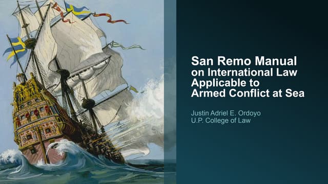 Συγκεκριμένα, το άρθρο 67 του San Remo Manual προβλέπει ότι τα εμπλεκόμενα μέρη σε σύρραξη μπορούν να αναχαιτίσουν εμπορικά σκάφη (ακόμη και σε διεθνή ύδατα) εφόσον παραβιάζουν ή επιχειρούν να παραβιάσουν έναν νόμιμο ναυτικό αποκλεισμό. Αυτό περιλαμβάνει την περίπτωση κατά την οποία: