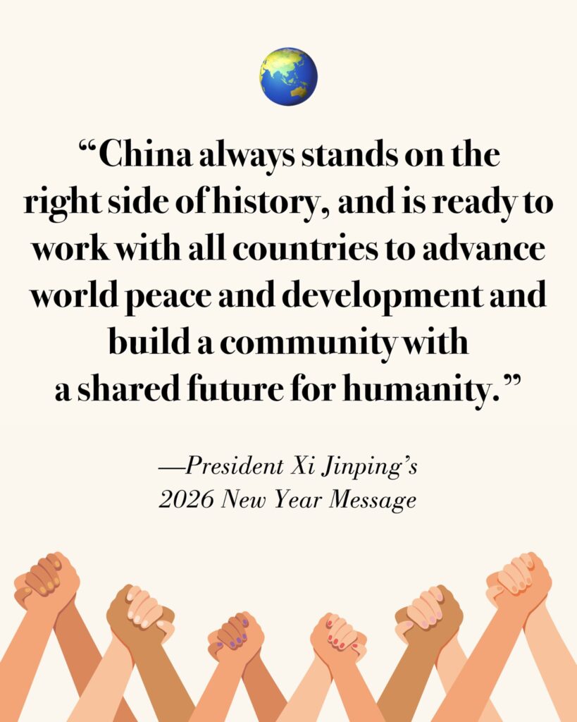 On New Year’s Eve, Chinese President Xi Jinping delivered his 2026 New Year message through China Media Group and the internet. The following is the full text of the message: