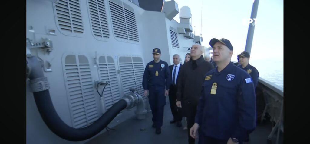Το θωρηκτό «Αβέρωφ», η τριήρης Ολυμπιάς και έξι πλοία του Πολεμικού Ναυτικού υποδέχθηκαν με λαμπρές τιμές τη φρεγάτα Belharra «ΚΙΜΩΝ», στην οποία βρέθηκαν ο Πρόεδρος της Δημοκρατίας, Κωνσταντίνος Τασούλας, ο πρωθυπουργός Κυριάκος Μητσοτάκης και ο υπουργός Εθνικής Άμυνας, Νίκος Δένδιας.