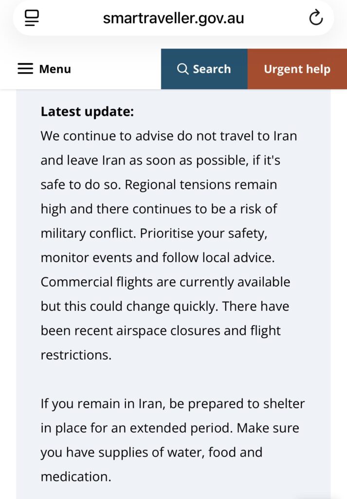 Australia has urged its citizens not to travel to Iran and to leave the country as soon as it is safe to do so.