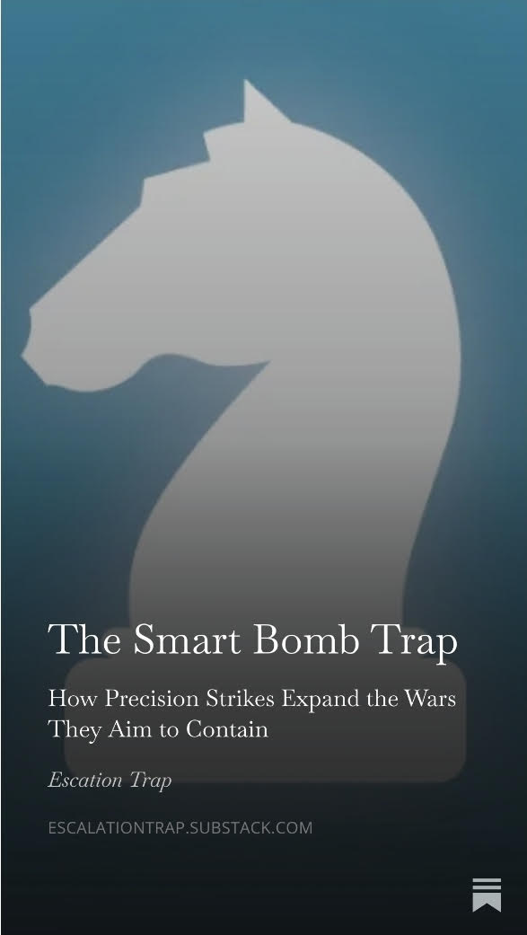 US is caught in the Smart Bomb Trap — failure to destroy Iran’s nuclear program in June is creating extreme fears to escalate which will make matters worse. To see where we’re heading: