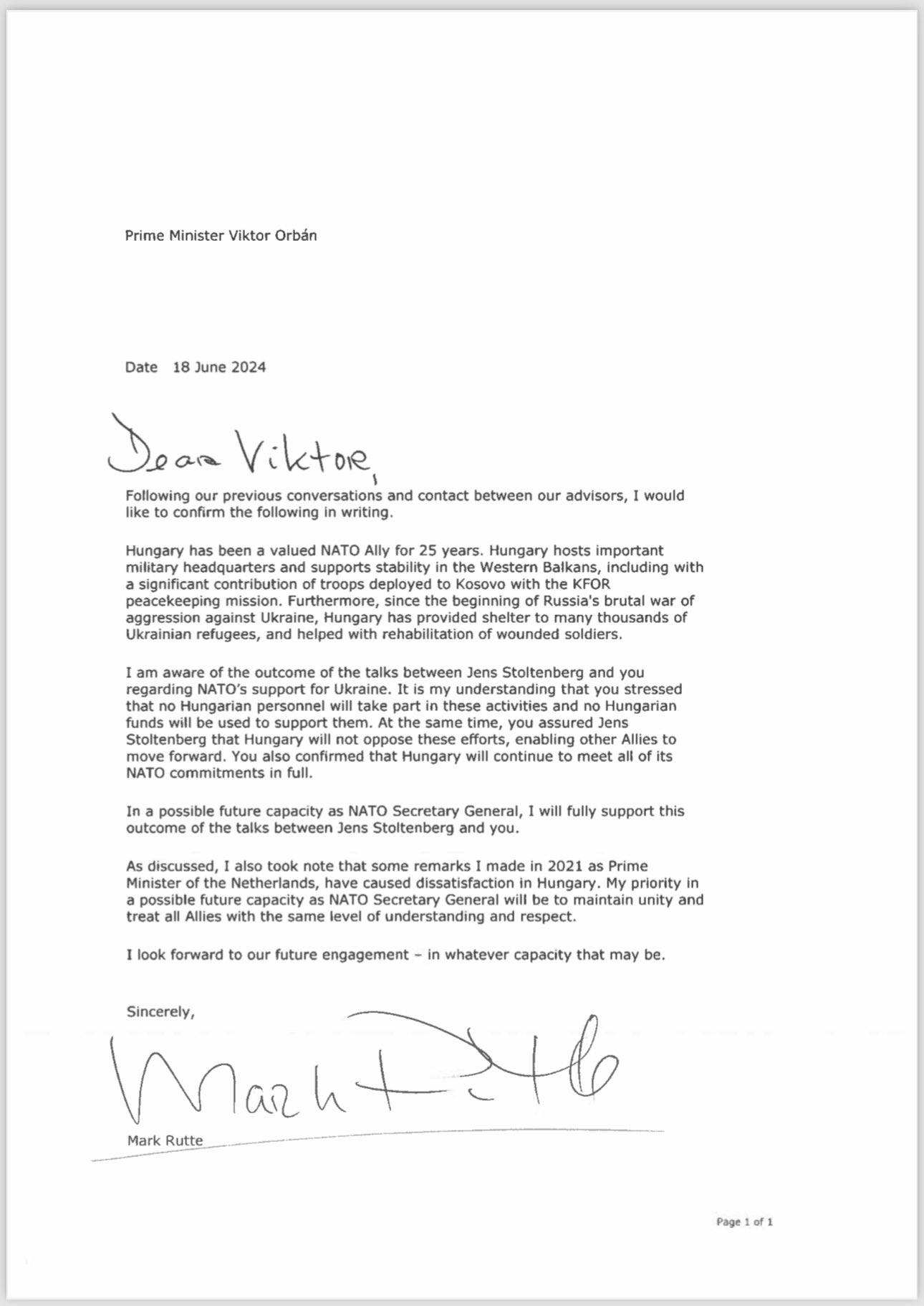 In light of his pledge, Hungary is ready to support PM Rutte’s bid for NATO Secretary-General.